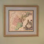 This handsome map of the mid-Atlantic colonies is balanced with an exquisite pictorial cartouche filling the lower right. The map itself is lovely and retains its original colors.  The dominate feature of this map is the huge title cartouche with depicts European merchants, Indians, trade goods, and the fruits of land and sea — imagery intended to attract people to the New World. This was done to promote interest and settlement in “The New World”. (more…)