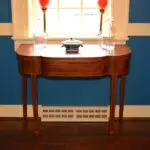 This is a lovely two Pembrooke table with two drawers (sometimes referred to as an end table). Made out of mahogany, it features flame mahogany on the top and front. (more…)