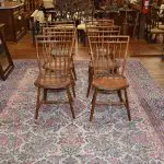 This is a wonderful set of 6 Windsor chairs with square, bent backs. The backs bend at toward the top and give the chairs a great look. Additionally, it makes them more comfortable. As one can see, they do have wear but each one is sound. (more…)