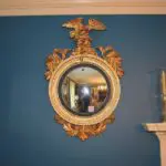 A magnificent, convex mirror covered in gold leaf. What an incredible piece! Look closely at the eagle. One can see the tension in the carving of it unfurling its wings to take off. The detail and movement are wonderful. (more…)