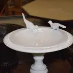 A beautiful, cast iron bird bath. It features two birds playing on top of the water basin. The basin connects via two bolts to the pedestal. The pedestal is fluted and has a base that is pierced and showcase roses. (more…)