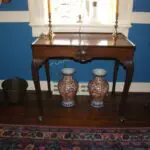 An Irish, Chippendale ball and claw tea table with great old finish. The top is one board and the edge is moulded in the dish top form. It is 31″ wide and 19 1/2″ deep.