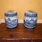 A beautiful pair of blue and white, Chinese export garden stools. This pair features a dragon, representing masculinity, on one side and a phoenix, representing femininity, on the other. (more…)
